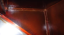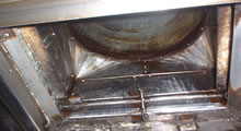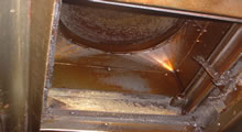 Kitchen extract canopy ductwork showing the build up of grease around the fire damper which may cause it to become ineffective.