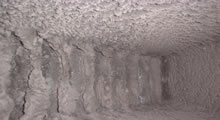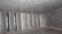 Hotel extract ductwork before cleaning - when left performance is drastically reduced & bacteria can proliferate in the dust etc.