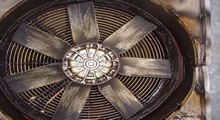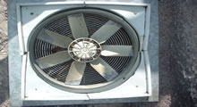Wall mounted kitchen extract fan after cleaning by cleanvent operatives allowing the fan to move freely.