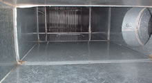 Turning vanes in a hotel extract ductwork after cleaning has been carried out by Cleanvent operatives.